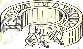 1 - статордың қалақшалары; 2 - ротордың қалақшалары;