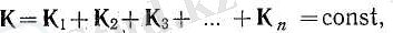 яғни екі дене өз ара әсер еткен кездегі олардың қозғалыс мөлшерінің жалпы өзгерісі нольге тең, олай болса, олардың жалпы қозғалыс мөлшері К=К а +К в тұрақты болады. Бұл нәтижені тұйықталған система түзетін бірнеше денелерге де, яғни тек өз ара әсер етісетін, бірақ системадан тыс ешбір денелермен өз ара әсер етіспейтін денелерге де, талдап қолдануға болады. Система п денелерден тұрады деп жорып және олардың әрбірінің қозғалыс мөлшерін өз ретінше К 1 , К 2 , К 3 , . . . , К п әріптерімен белгілесек, сонда мына формула шығады: