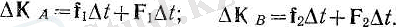 Егер А және В денелеріне олардың өз ара әсер ету күштерінен (f 1 мен f 2 ) басқа сыртқы Ғ 1 мен Ғ 2 күштері әсер ететін болса, ол денелердің әрқайсысына арналып мына теңдіктер жазылады.