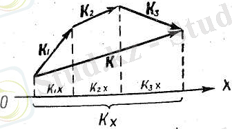 38-сурет. Қорытқы К векторының К х проекциясы қосылғыш векторлар проекцияларынын қосындысына тең.