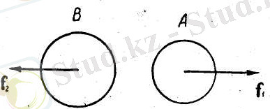 35-сурет. А денесіне В денесі f 1 күшімен әсер етеді; ал В денесіне A денесі f 2 күшімен әсер етеді, сонда бұл күштер сан жағынан өз ара тең де, бағыт жағынан қарама-қарсы болады.