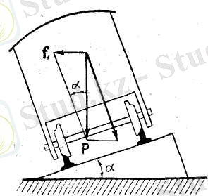мұндағы m - вагонның массасы. Вагонның салмағы P = mg, сонда (5) теңдік бойынша іздеп отырған жол көлбеулігі α бұрышы арқылы анықталады, ол мына теңдікті қанағаттандырады: