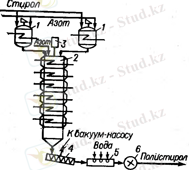 2 сурет. Стиролдың жарым жартылай конверсиялы полимерленуінің технологиялық схемасы:
