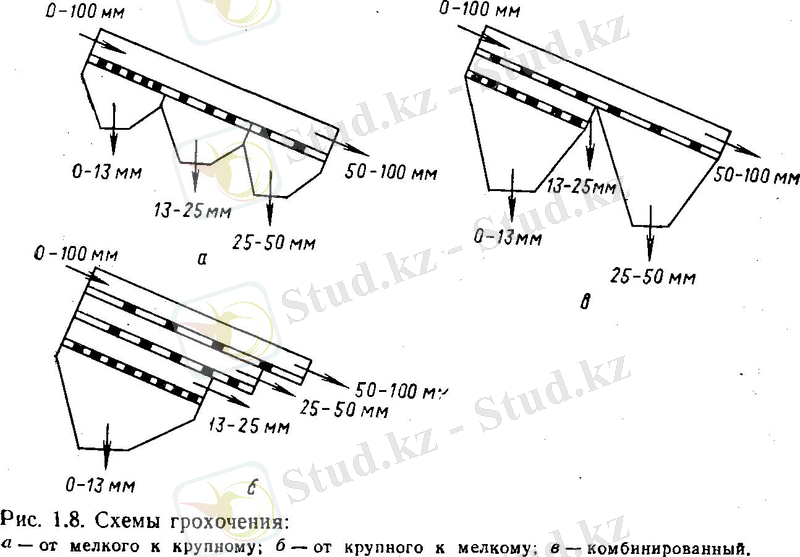 Ірілігі бойынша белгілі класты материалдарды бөліп алу әдістеріне байланысты елеудің іріден бастап майдаға дейін, майдадан бастап іріге дейін және араласқан түрлері ажыратылып танылады (сурет 1. 8) . Іріден бастап майдаға дейін елеу кең тараған.