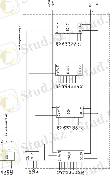 Сүретте мысалы үшін 6-ші модуль көрсетілді. Осы модульді таңдап алу үшін А 15 - А 12 адрес сызығының коды 0110 болу керек.