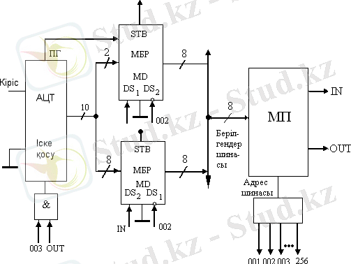 Жады мен перифериялық құрылғылармен микропроцессор интерфейсін ұйымдастыру ерекшеліктерін қарастырайық.