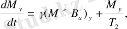 Мұндағы, ( M 0 -M z ) / T 1 - В а магнитттік өріспен байланысты емесәсерлесулердің нәтижесінде пайда болатын теңдеудің қосымша мүшесі . Осылай, магниттік өрістің айналасындағы прецессиямен қатар, М магниттелу векторы М 0 тепе-теңдік нәтижеге .