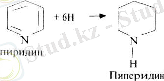 Пиридинді атом күйіндегі сутекпен әрекеттестіріп, тотықсыздандыруға, яғни сутектендіруге болады. Осы кезде пиридиндегі қос байланыс қанығып, пиперидинге айналады. Ол үшін спиртті ортадағы пиридин ерітіндісіне натриймен әсер етеді және осы кезде спирттен бөлінетін сутек атомы пиридинді қанықтырады: