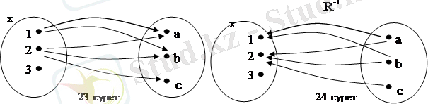 23-суретте Х={1, 2, 3} және У={а, в, с} жиындарының арасындағы қайсыбір R сәйкестігінің графы берілген. Бұл жерде 1ÎХ элементіне У жиынының а және в элементтері сәйкес, яғни 1Rа, 1Rв, 2Rа, 2Rв, 2Rс екенін көреміз.