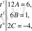 функцияларының коэффициенттерін салыстыру арқылы теңдеулер жүйесін құрамыз