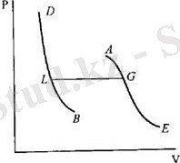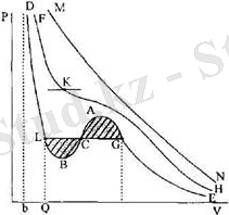 УрУ^. Уз үш түбірлері болады. Мүндай кездерде изобара изотерма-ны үш Ь, С, С нүктелерінде қиып өтеді (4. 2-сурет) . Изотерманың өркештенген ЬВСАО учаскесі бар. Ол әуелі монотонды түседі ( ВВ учас-ке), сосын ВА учаскеде монотонды көтеріледі, ал содан соң А нүктеден кейін тағыда монотонды түседі. Қайсы бір аралык температура кезін-