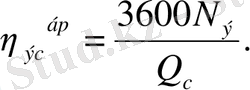 Э қайда - iстеп шығарылған электр энергиясы; Qс, кДж/ч - жұмсаған (өртенген отынның жылулығы) энергия; эсн=Эсн/Э - (4-6% ) станцияның меншiктi мұқтаждықтарына электр энергиясының еншiсi. Уақыттың аралығының сақшысы үшiн жазып алған (2. 4 ) өрнек сияқты болады: