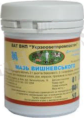 иод, хлорамин, перманганат калий, этил спиртiмен басқа Вишневский мазы