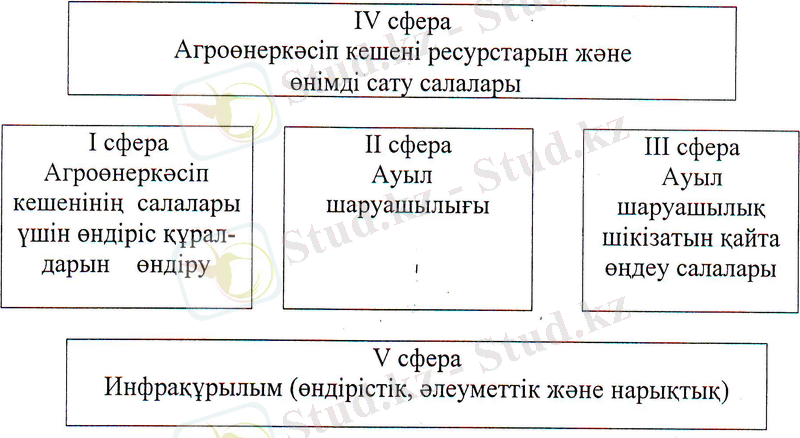 Агроөнеркәсіп кешенінің салалық-қызметтік құрылымы үш сферадан тұрады, олар төмендегілер: