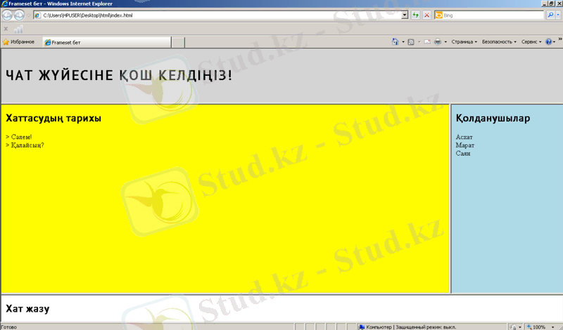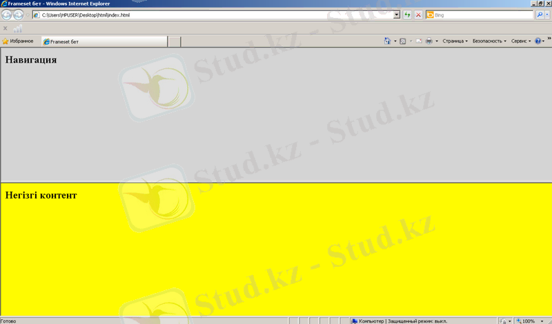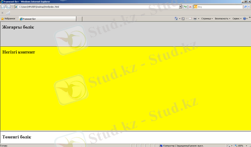 қарастырайық. Жоғарыда айтылғандай, əәр фрейм жеке веб-бетті көрсетеді.