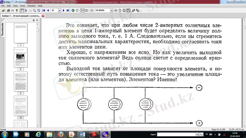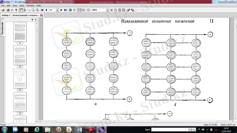 Параллельді байланыс кезінде кернеу емес тек токтың көлемі ғана артады. Параллельді байланысқан элементтердің генерациялаушы кернеуі 0, 5 В-тан аспайды, ол элементтер санына тәуелсіз. Екі түрлі байланыс тәсілдерінің артықшылықтарын пайдалана отырып, элементтердің тізбектей және параллель байланысын біріктіруге болады. Осындай түрдегі байланыс батарея деп аталады. Батареяларды кез келген комбинация бойынша құрастыруға болады. Орналасуына тәуелсіз элементтердің шығыс сипаттамалары бірдей болады. Мысалға, жекелеген элементтердің қысқаша тұйықталуын болдырмау үшін тізбектелген элементтерден құралған тізбекті параллель жалғайды (сурет 4, а) . Ал 4, б-суретте элементтердің параллельді - тізбектей жалғануы көрсетілген. Бұл байланыс егер элементте жарық пайда болған жағдайда тізбек толығымен жұмыс істеуден шықпас үшін қолданылады. Басқа да байланыс типтерін қолдануға болады, ол құрылғының нақты жұмыс істеу мүмкіндіктеріне байланысты [10, 11] .