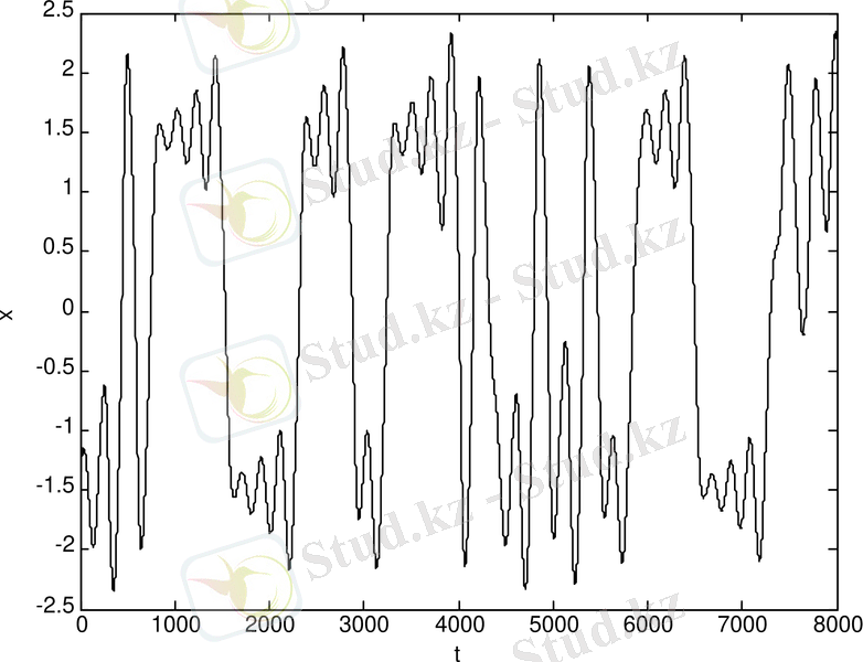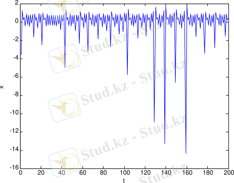 Хенон бейнелеу генераторының a =1. 3 және b =0. 4 мәндеріндегі тербеліс реализациясы (сурет 1. 2-ә) келтірілген.
