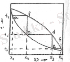 Бұл сұйық t 2 температуға дейін ысытылғанда бу (d - нүкте) пайда болады және ол конденсацияланғанда концентрациясы Х 3 сұйық алынады. Сонымен, сұйықтың булану және будың конденсациялану процестерін кезегімен бірнеше рет өткізіп, таза ТҚ - дан құралған сұйық (дистиллят) алуға болады.