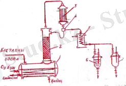 Мұндағы: 1-ысытқыш; 2-ректификациялық колонна; 3-дефлегматор; 4-флегма бөлгіш; 5-суытқыш; 6-жинағыш