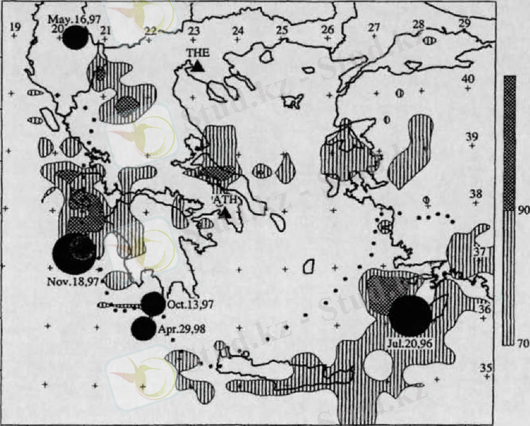 1- сурет . Греция үшін жасалған күтілетін жер сілкіністер картасы
