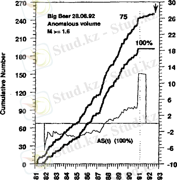 3 - сурет. 1992 жылы Калифорнияда болған жер сілкінісі алдындағы сейсмикалық оқиғалардың интенсивтілігі