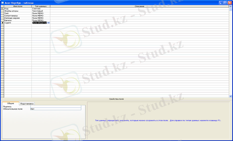 2. 3 сурет. Accessтерезесінде жалпы көрініс