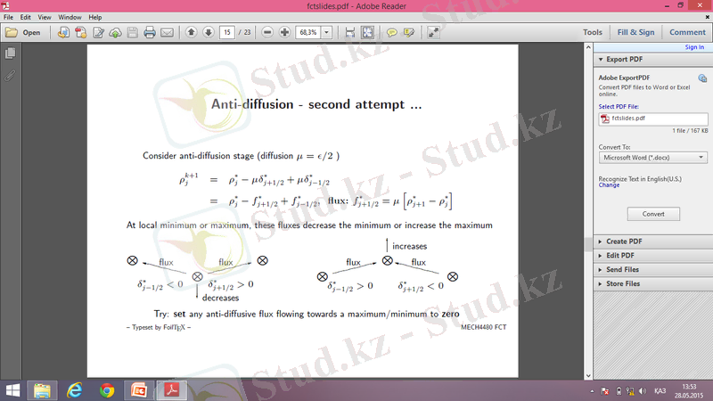 Upwind схемасын қолданғанда бізде сандық диффуция пайда болады: