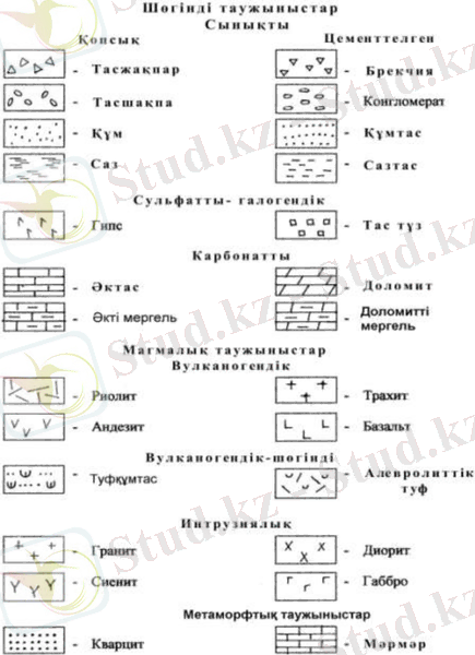 Стратиграфиялық бағананы құру, геологиялық картаның шартты белгілері және геологиялық қималар