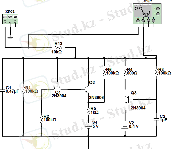 Бұл бөлімде бір осцилляторды сыртқы күшпен синхрондау эксперименттерінің нәтижесі көрсетілген. Автотербелмелі жүйе ретінде ФинцХью-Нагумо моделін сипаттайтын жүйенің электронды схемасы жасалынды. Эскперименттің блок схемасы 9-суретте көрсетілген. Жүйеге XFG1 функционалды генераторынан R13 резисторының көмегімен сыртқы периодты күш берілді. Функционалды генератордан және осциллятордан щыққан сигналдар 4-каналды осциллографтың көмегімен жазылды.