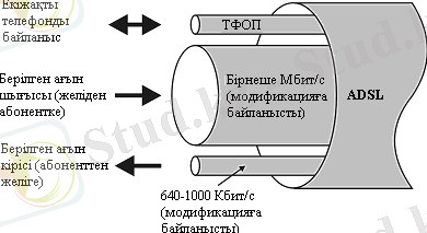 Қазіргі кезде ең тиімдісі ADSL (Asymmetric Digital Subscriber Line) технологиясы болып табылады. Бұл - стандатты аналогты абонентік телефондық желілерді жоғары жылдамдықты қатынау желілеріне айналдыратын жаңа модемдік технология. ADSL технологиясы тұтынушыға ақпаратты 6 Мбит/с-қа дейін жылдамдықпен тарату мүмкіндігін туғызады. Кері бағытта 640 кбит/с-қа дейінгі жылдамдығы қолданылады. Бұл мынаған байланысты, өйткені заманауи желілік қызмет көрсетушілердің бірқатары тұтынушыдан аз мөлшердегі жылдамдықты талап етеді. Мысалы, MPEG-1 форматындағы бейнефильмдерді жазып алу үшін 1, 5 Мбит/с өткізу жолағы қажет. Абоненттен келетін қызметші ақпарат үшін 64-128 кбит/с та жеткілікті (1. 1-сурет) .