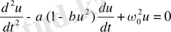 мұндағы, μ -сыртқы көзден жүйеге энергия тасуды сипаттайтын қоздыру коэффициенті (кері байланыс коэффициенті, теріс кедергі), μ оң болған кезде жүйеде тербелістер өседі, бірақ бейсызықтықтың салдарынан олардың амплитудасы шектеледі, ал формасы синусоидаға қарағанда айтарлықтай өзгеше болады.