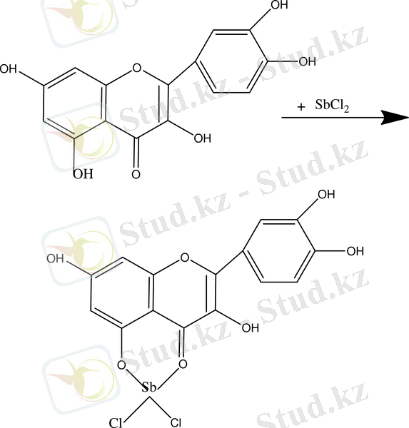 Үшхлорлы сүрме реакциясы. 5-оксифлавон және 5-оксифлавонол үшхлорлы сүрмемен әрекеттесіп, комплексті қосылыс түзеді, нәтижесінде сары және қою сары түске флавондар боялады, ал қызыл немесе күлгін қызылға халкондар береді.