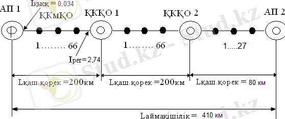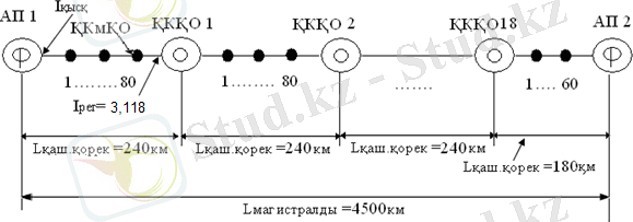 l ВНЗ =k*l РЕГ +l ОСТ , км; k=l маг /l РЕГ =4500/3, 118=1443, 216 ҚКРП саны;