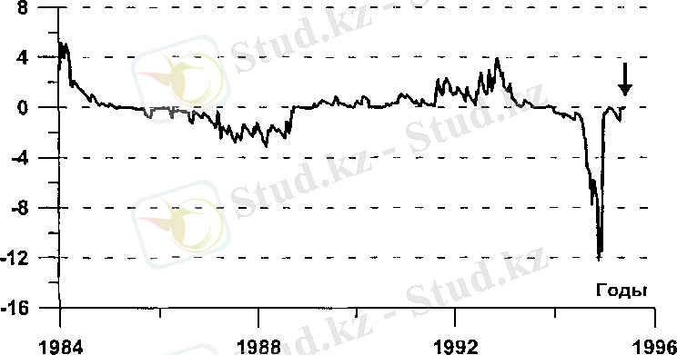 20 - сурет. 1995ж. Кобе қаласында (Жапония) М=7. 2 болған жер сілкінісінің ретроспективті болжау функциясы