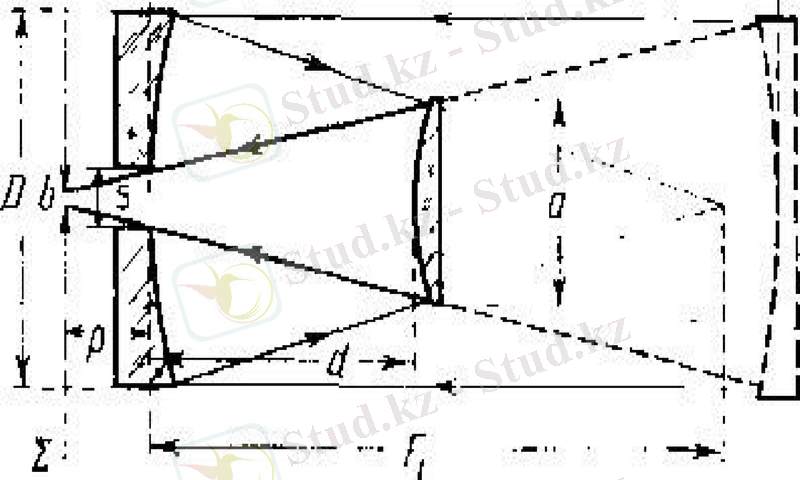 2. Кассегрен жүйесінде (1672 ж. ), негізгі осіне дөңес гиперболалық айна орналасқан. Ол негізгі айнадан шыққан шоғырды ұстайды , Ф 7 фокус негізгі айнада болатындай етіп оны баяу шығатын етеді, ал жарық шоғыры негізгі айнадағы орталық саңылау арқылы құбыр сыртына шығарылады;