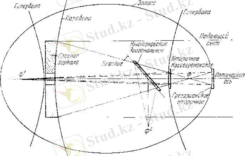 Сурет 3. 2. Қосымша айналармен шағылдырғышты телескоптардың негізгі үш түрі