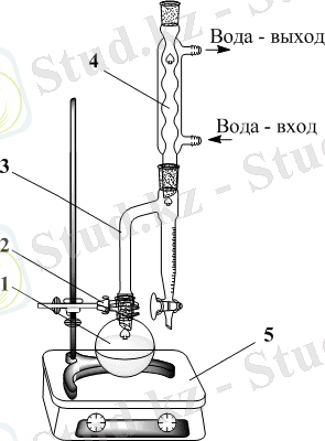 - Дөңгелек түпті колба, 2- лапка, 3-Либих тоңазытқышы, 4- Дина Старк насадкасы, 5 - электроқоздырғыш