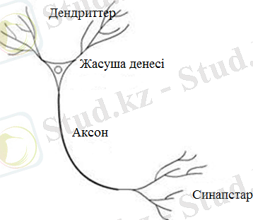 ЖАСАНДЫ НЕЙРОНДЫҚ ЖЕЛІЛЕР ЖӘНЕ ОЛАРДЫҢ ҚҰРЫЛЫМЫ 1. 1Биологиялық нейрондық желі Нейрон дегеніміз - құрамында бірнеше кірісі және бір-ақ ғана шығысы бар желі. Нейрон екі режимде жұмыс істейді: біріншісі үйрету режимі және екіншісі қолдану режимі. Адам миында орташа статистикалық мөлшермен алғанда жиырма миллиард нейрон бар. Бізге белгілі болғандай, нейрон - тор денесі және өсімшеден тұрады. Нейрон - жүйке жүйесінің негізгі функционалды және құрылымдық элементі болып келеді (1. 1 сурет) . Оларды басқаша айтқанда, дендрит пен аксон деп те атайды. Нейронда дендриттер көп, және олар көп таралған, оның көмегімен нейрондар импульстарды көрші торлардан жинайды. Ал аксон біреу, ол арқылы нейроннан сигнал өтіп көрші торларға барады. Ал нейрондық торларда нейрондар бір-бірімен байланысқан, сол арқылы ақпарат таралады. Нейрондардың атқаратын қызметі ақпаратты сақтау және өңдеу, сонымен қатыр өсімшелерді қоректендіріп отыру. Негізінен, орталық жүйке жүйесінде жасушалар бір - бірімен синапс ретінде байланысқан. Синапс - екі нейрон арасындағы байланысқан түйіскен жер. Жалпы кәдімгі нейронның жұмысының негізіне химиялық процесстер кіреді [1] .