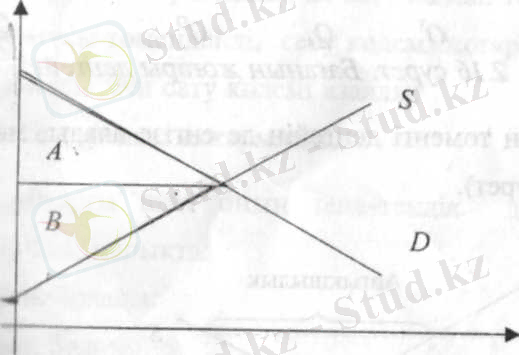 жуықтау, яғни, жоғарыдан D қисық сұрасына ж/е төменнен - p=pe деңгейлес тіке сызықпен шектелген сатылы фигура алаңына тең екендігін көреміз. Егер біз [0, Qe] интервал бөлінуін майдаласақ онда графиктегі сатылы фигуралардың жоғары шекарасы D сұраныс қисығына жақындай береді. Ұсыныс қисығы өндірушілердің сатуға келісетін белгілі тауар мөлшерінің ең төменгі бағасын көрсетіп тұр. Өндірушілнрдің бәр бөлігі аз мөлшерде ғана сатады, ал кейбіреулері өндірісті мүлде тоқтатады. Бірақ, бәсекелік нарықта өндірушілер аз тауарларын біркелкі бағамен сатып жатады. pe-p aйырмашылығы тауар бірлігін сатудан тапқан өндірушілердің ұтысын анықтайды. А ауданы-тұтынушылар ұтысы, В ауданы- өндірушілер ұтысы, А+В ауданы қоғам ұтысы. (График Тұтынушылар мен өндірушілердің ұтыстары) . Көргендей, p<pe бағасында pe біркелкі бағасына дейін құнды көтеру талпынысы бар, бірақ оны pu деңгейінен жоғары көтеруге тыйым салынған. Сондықтан рынокта тауар pu бағамен сатылатын болады. Q s Ұсыныс мөлшеріне қарағанда, Q D сұраныс мөлшері жоғары болып келеді, бұл тапшылыққа апарады. Тауар тапшылығы тұтынушылардың теңсіздігіне әкеледі. Тұтынушылардың бір бөлігі тауарды pu бағасымен ала алады. Қалғандары pu-дан гөрі артық баға төлеуге келісуге мәжбүр болады. ”Бейресми базар“ пайда болады. Қоғамның ұтысы қысқарады: А’+B’<A+B, бұл жағдайда өндірушілнр B<B’болғандықтан ұтыста қалады. (график Бағаның жоғары деңгейі) Үкімет бағаның төменгі деңгейін де енгізе алады, мәселен еңбек нарығын . (график Бағаның төменгі деңгейі) жұмыска түргандар ұтымды жағдайда болады. Жұмыссыздык артады. Қоғамдық ұтыс төмендейді: А’+B’<A+B. анығы, А ! <A болғандықтан түтынушылар ұтылыста болады.