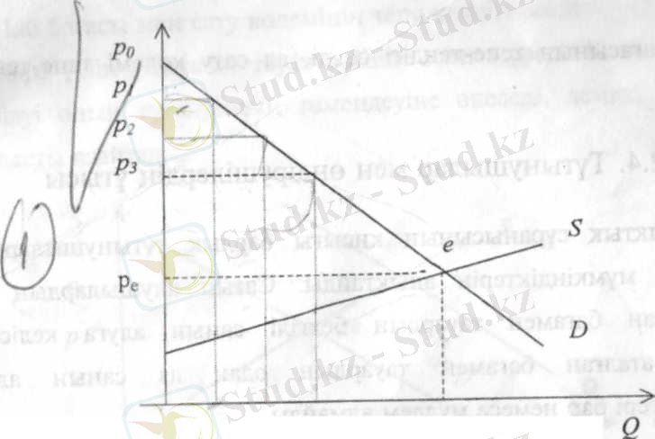 …, Q =Q нүктелермен бөліп тастайық. Тұтынушылардың бір бөлігі Q=Q-0 тауар бірлігін кем дегенде p бағаға сатып алуға келіседі, бірақ шындығында олар p бағамен алатын болады