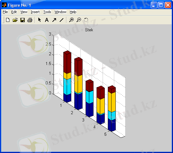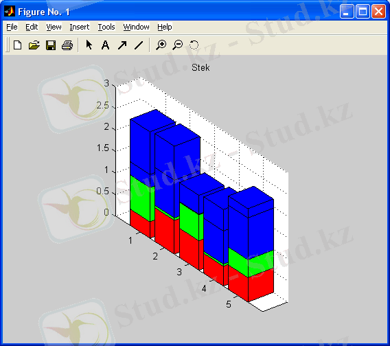 bar3(Y, 0. 3, 'Stacked'), title('Stek') ;