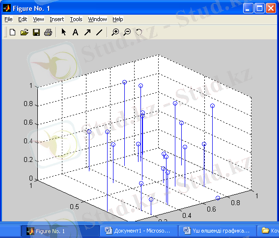 Matlab программалау тілінде үшөлшемді графиктерді салуға арналған функциялармен танысып, оларды пайдалана отырып, графиктерді құру және оларды редакциялау.
