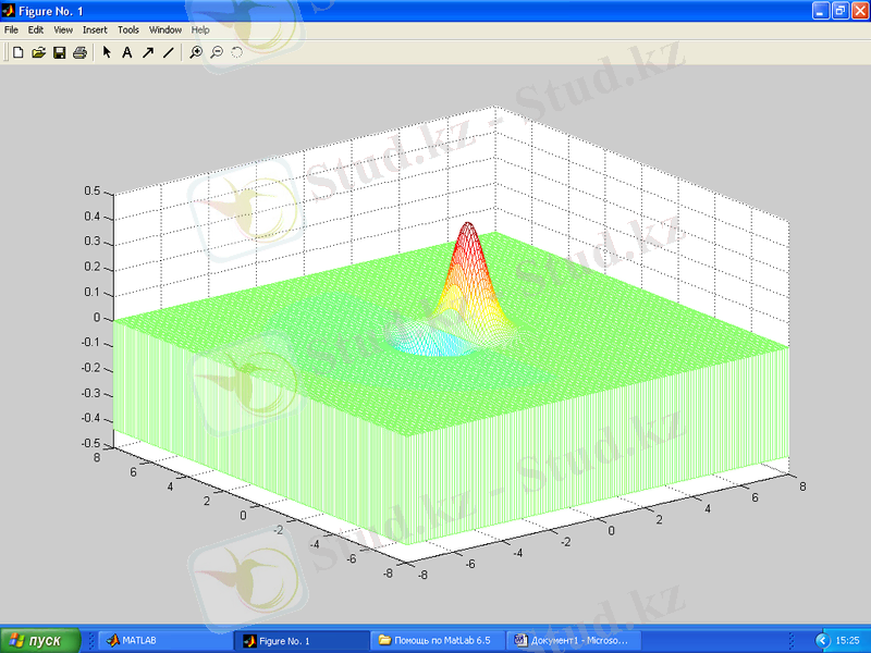 Команда mesh(Z) беткі қабаттарының шығарады, алдында айтылғандай, массив түсі ретінде С=Z қолданылады, яғни түсі бұл жағдайда бетіне пропорционал.