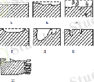 г - дақтары бар; д - ісіктері бар; е - нүктелері бар (питтингтік) ;