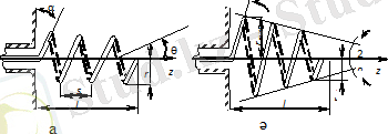 Конустық спиралда (сурет 1. 3, ә) ораманың ұзындығы мен екі ораманың арасындағы қашықтық айнымалы болып келеді. Параметрлері: l