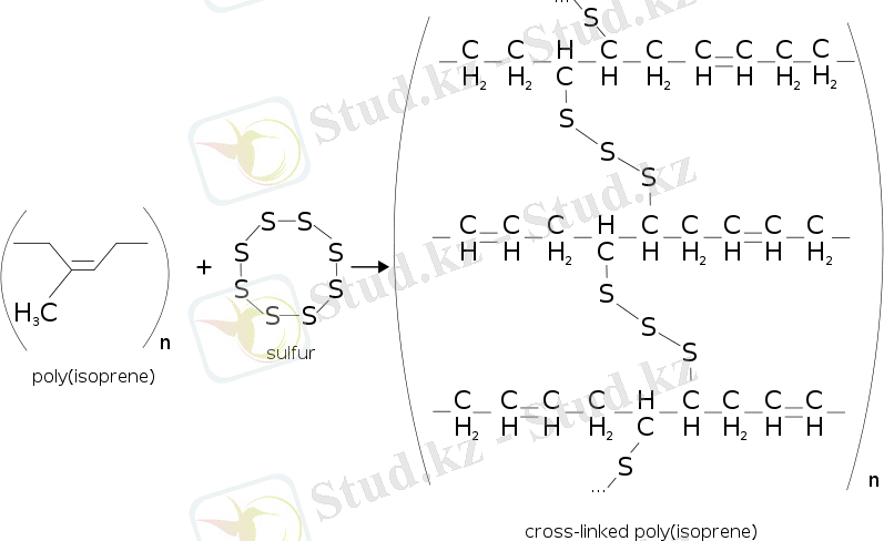 Резина вулканизация арқылы алудың қарапайым мысалы жоғарыда көрсетілген.