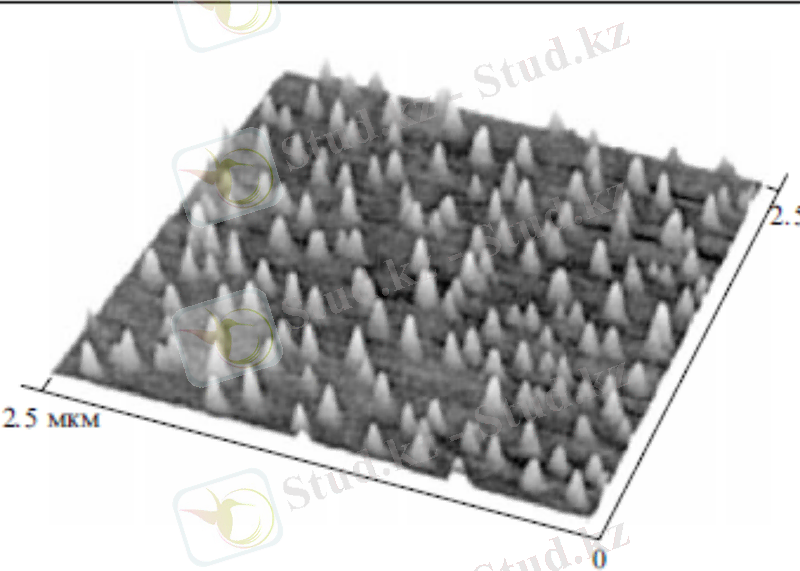 SiC өскен ұрығының морфологиясы атомдық-күш микроскопиясымен қадағаланған. Кремний төсенішіндегі электронды-сәулелік әдісімен көміртекті тұндырғаннан кейінгі ұрық пайда болуы 8-суретте көрсетілген.