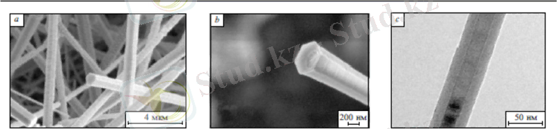 Айта кетсек, SіC наносымдарын 1600 0 C аргон атмосферасында буландыру арқылы жасауға болады, әртүрлі шығу компоненттерін қолдана отырып: графитті тигельдегі кремний және графитті төсеніш ((1) -(4) реакциялар) ; кремний мен графит ұнтақтарының қоспасы, кремний монооксиді мен тұнба ұнтақтарының қоспасы, ол плазмалық өңдеу арқылы белсендірілген ((5) -(8) реакциялар) . Жоғары масштабты синтезге арналған бұл зерттеулердің нәтижесін кесте 2-мен салыстыруға болады. Бүкіл технологиялық процестерді катализатор қатысынсыз өткізеді т. б., өсу механизмнің схемасы мынау бола алады бу қатты дене; кристалл өсуінің бағыты 111 . SіC гексагональды және шеңбер қиылысқан наносымдарының жалпы бейнесі 4-суретте көрсетілген. Кремний жерлік қабатының бар екені білініп тұр ( 4-сурет b, c) ; рентгенфазалық сараптау бойынша кремний оксиді рентгеноаморфты күйге тән.