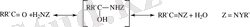 Бұл реакциялар қайтымды, дегенмен тепе-теңдік орнауы кәдімгі жағдайда гидразонға қарай бағытталады, сондықтан тіпті судың реакциялық сферадан шығуы міндетті емес. Бірақ егер де сол бір карбонилді қосылыстың әр түрлі гидразиндармен реакциясының аяқталғандығын салыстырса, екі жағдайда да фенилгидразон түзілуі семикарбазонға қарағанда толық болады. Мысалы α-карвонның фенилгидразинмен реакциясының су-спиртті ортада тепе-теңдік константасы 6·10 -2 , ал семикарбазидпен - 3, 6·10 -2 тең. 2, 4-динитрофенилгидразон түзілгенде реакция қайтымдылығы байқалмады, оның себебі соңғының нашар еруіне байланысты.