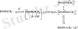Карбонильді қосылыстардың гидразиндармен реакциясының бағыты жәнетүзілген өнімнің құрылысы жүргізіліп отырған конденсация жағдайларына - бастапқы заттардың арақатынасына, реагенттердің концентрациясына, катализатордың табиғаты мен оның болуына, ортаның қышқылдығына, температура мен реакция уақытына байланысты.